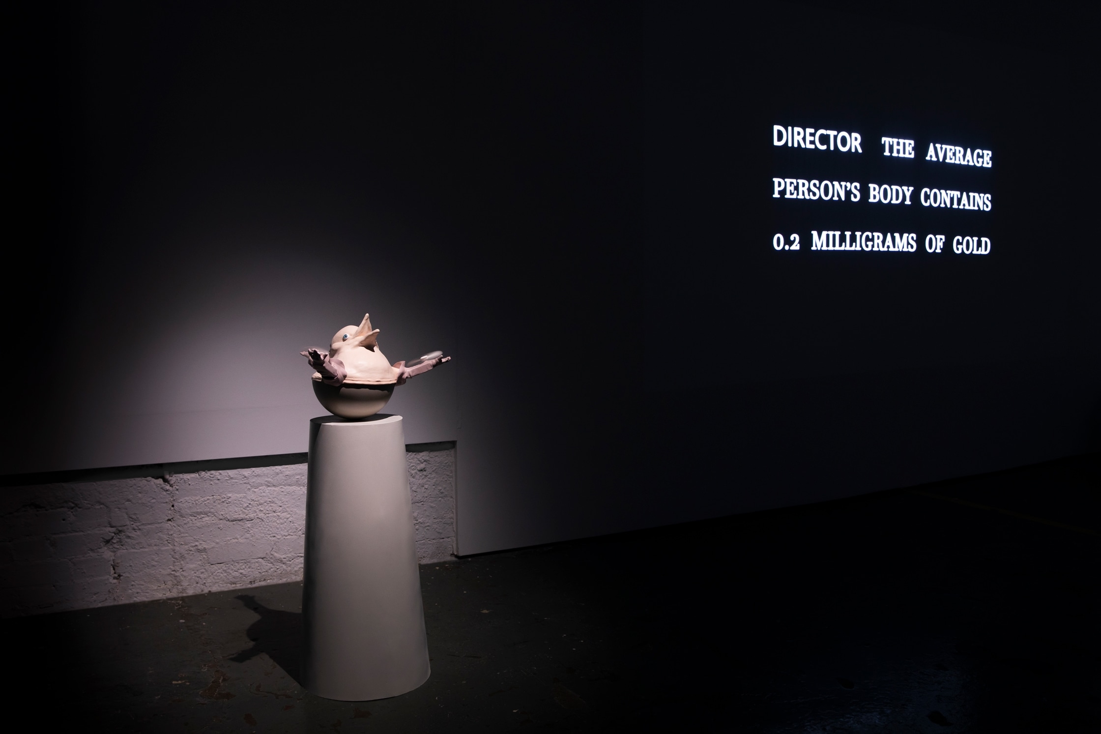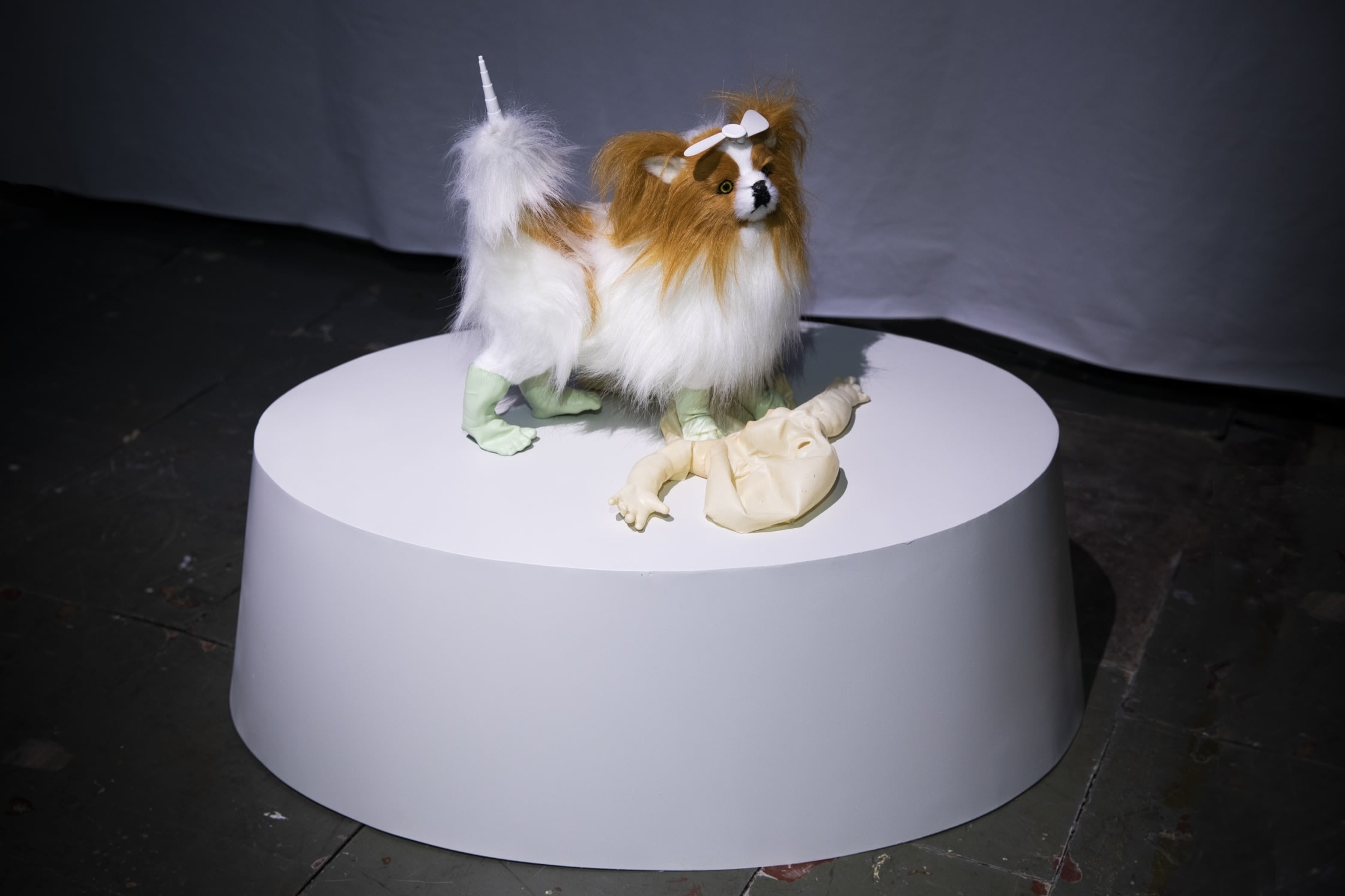 Amélie Mckee’s work operates as a dissection of delivery systems. Long house, an industrialised birth canal, questions the commodification of babies as they are increasingly approached as an embodiment of family values and used as a vehicle to portray the self in the online realm. Pilot Solutions, a series of sculptures, is inspired by drones situated between romantic ideals of flight and dystopian war devices. The work points at debates around the increase of mechanical devices affiliated to the body and the strategy of modification that seeks to avoid surveillance technology (Aposematic Display I).