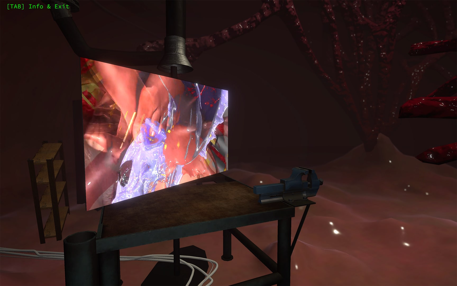 In CELL 001, after zigzagging between pillar drills and gas bottles, we are guided by the sound and light of TV screens — the only functional machines in a seemingly biological environment. Bruckner’s work is a collage of darkroom sci-fi, queer post-pornography, and extra-terrestrial social bonding. Bruckner approaches queer net pornography in terms of its affectively interwoven corporeality, formed between sensation, technology, and labour with the internet. SUB·RS toys with different accessibility parameters.
