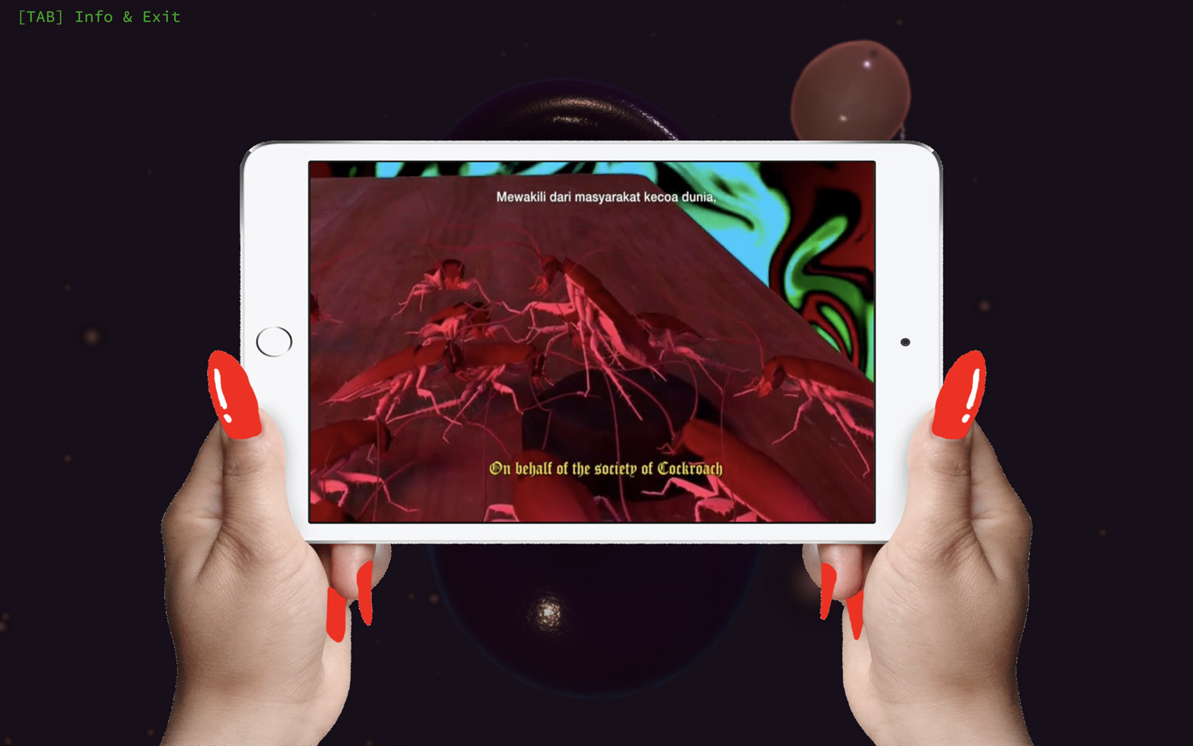 The different interaction modes play with ideas of invasiveness. To generate the artwork in CELL 002 one has to click on the escaping cockroach, invading another creature’s habitat and poking it with a cursor. Tontey wonders whether cockroaches could be the key to a sustainable future for humanity. Being marginalised for a thousand years as a carrier of diseases and fearsome species by the human counterpart, cockroaches bear agency as the only species that could survive manyfold extinction events and epochal transformations. What can we, humans, learn from cockroaches? And in turn, what can they learn from us? What is the method of reciprocity for human and non-human agency?